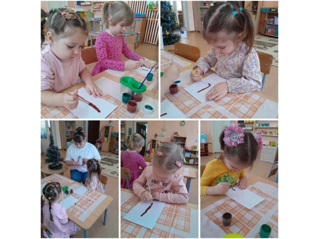 Праздник начался с творческих занятий, где каждый ребёнок рисовал свою уникальную елочку, украшая ее разноцветными шарами. Елочка буквально засияла от радости и праздничного настроения!